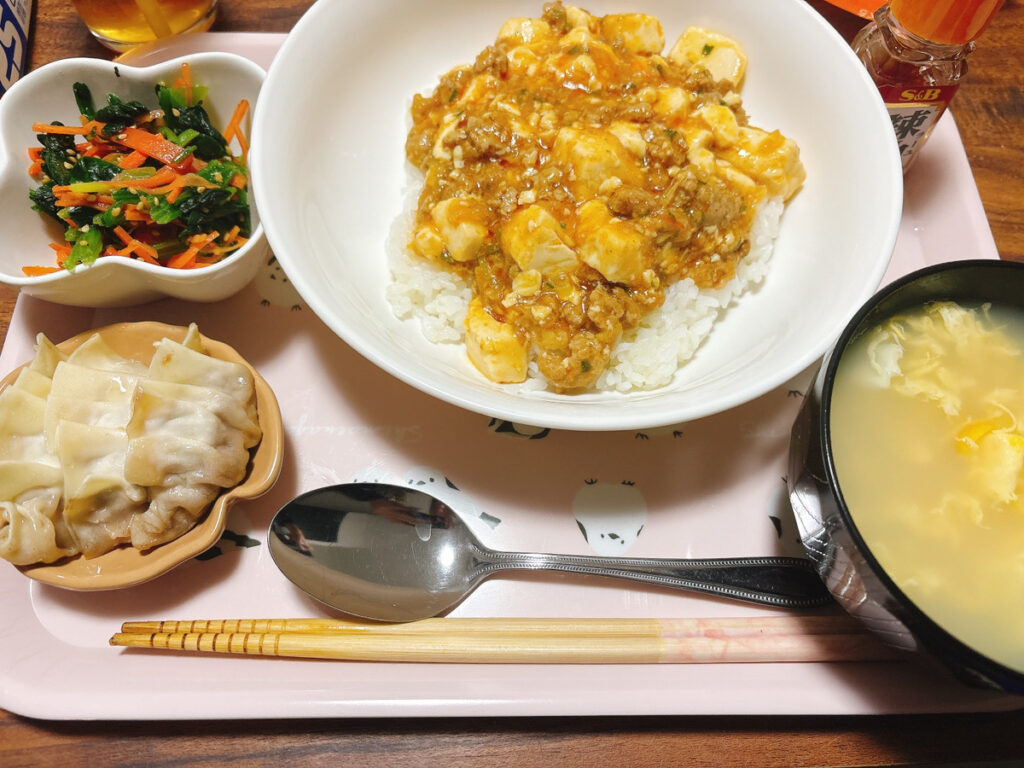 麻婆丼/ほうれん草と人参のナムル/餃子