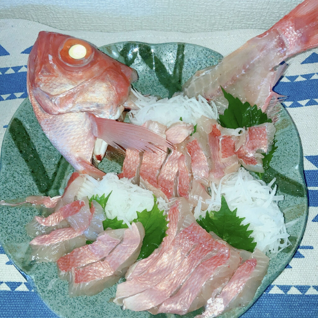 お魚を捌く事も好きで金目鯛のお造りに挑戦してみました💖