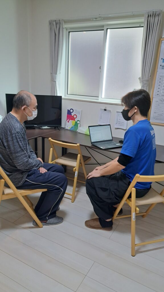 職員は利用者様と個々に面談というと仰々しいですがお話する機会を作っています。