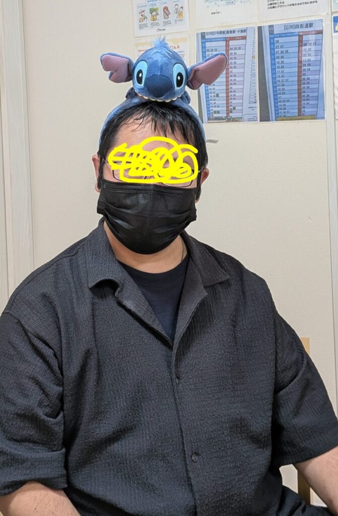 👆この何気ない朝の会話、♧さんの頭には、ディズニーキャラクターのカチューシャがのっていました。
