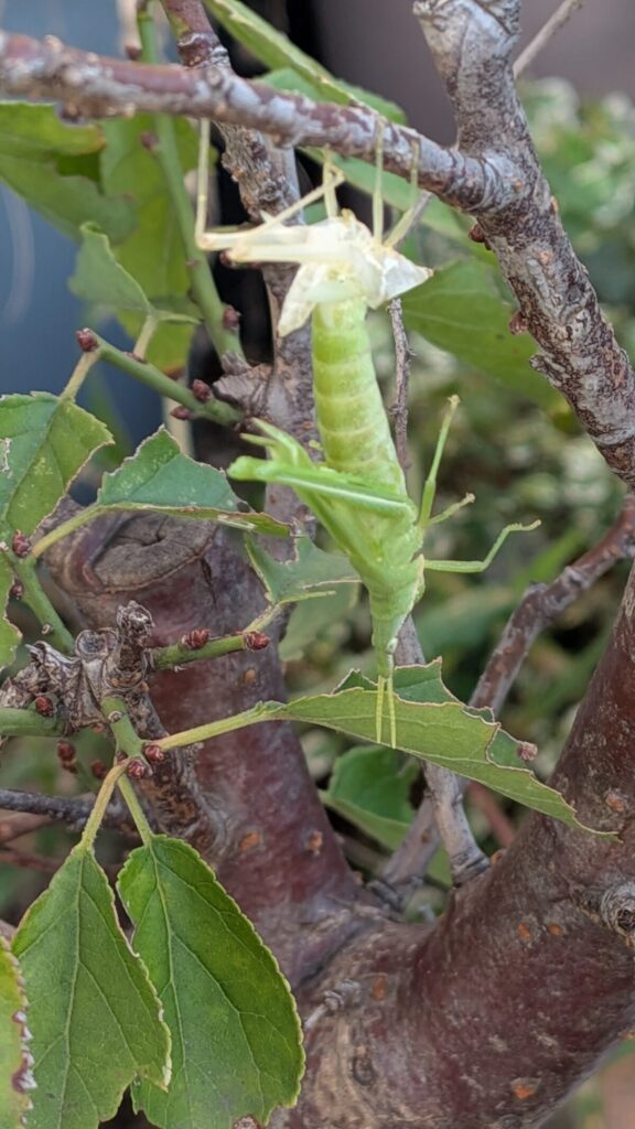 さて、今回ですが、珍しい写真をおみせしますよ~それはなんと”バッタの脱皮”です。