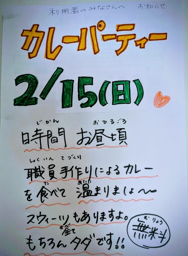 職員が作るふつうのカレーを利用者様に食べて頂こうという企画