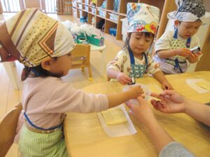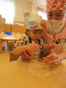 給食の先生👩🏻‍🍳にクッキー生地を作ってもらい、