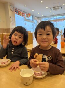 型抜きが終わった後には給食の先生👩🏻‍🍳に